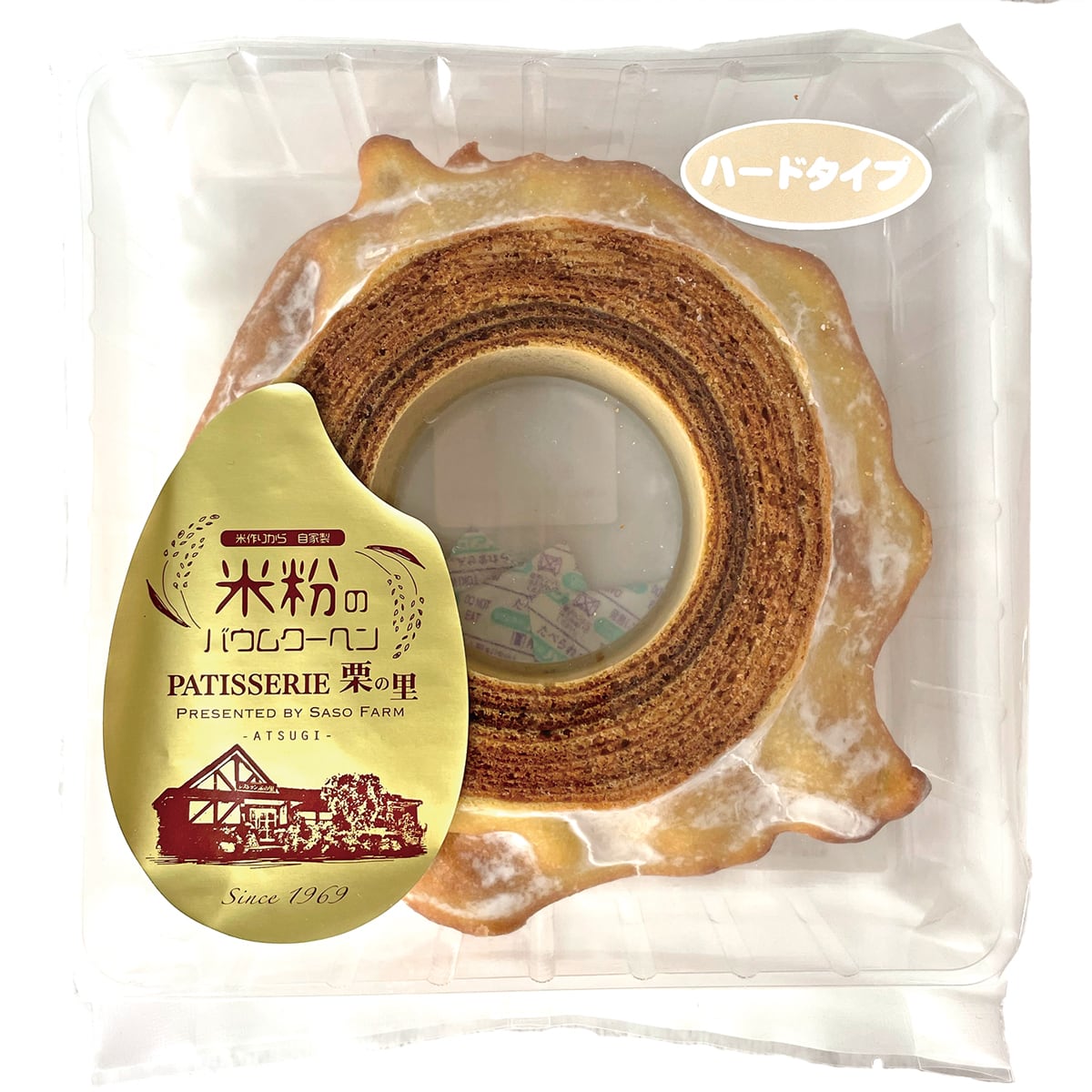 お米農家が作った米粉のバウムクーヘンです。減農薬、殺虫剤不使用の厚木産の米粉から、専属パティシエが丁寧に一本ずつ焼き上げました。