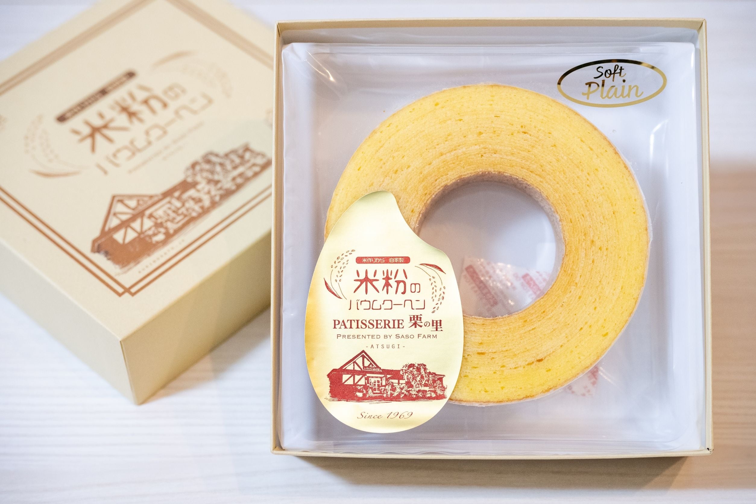お米農家が作った米粉のバウムクーヘンです。減農薬、殺虫剤不使用の神奈川県厚木産の米粉から、専属パティシエが丁寧に一本ずつ焼き上げました。